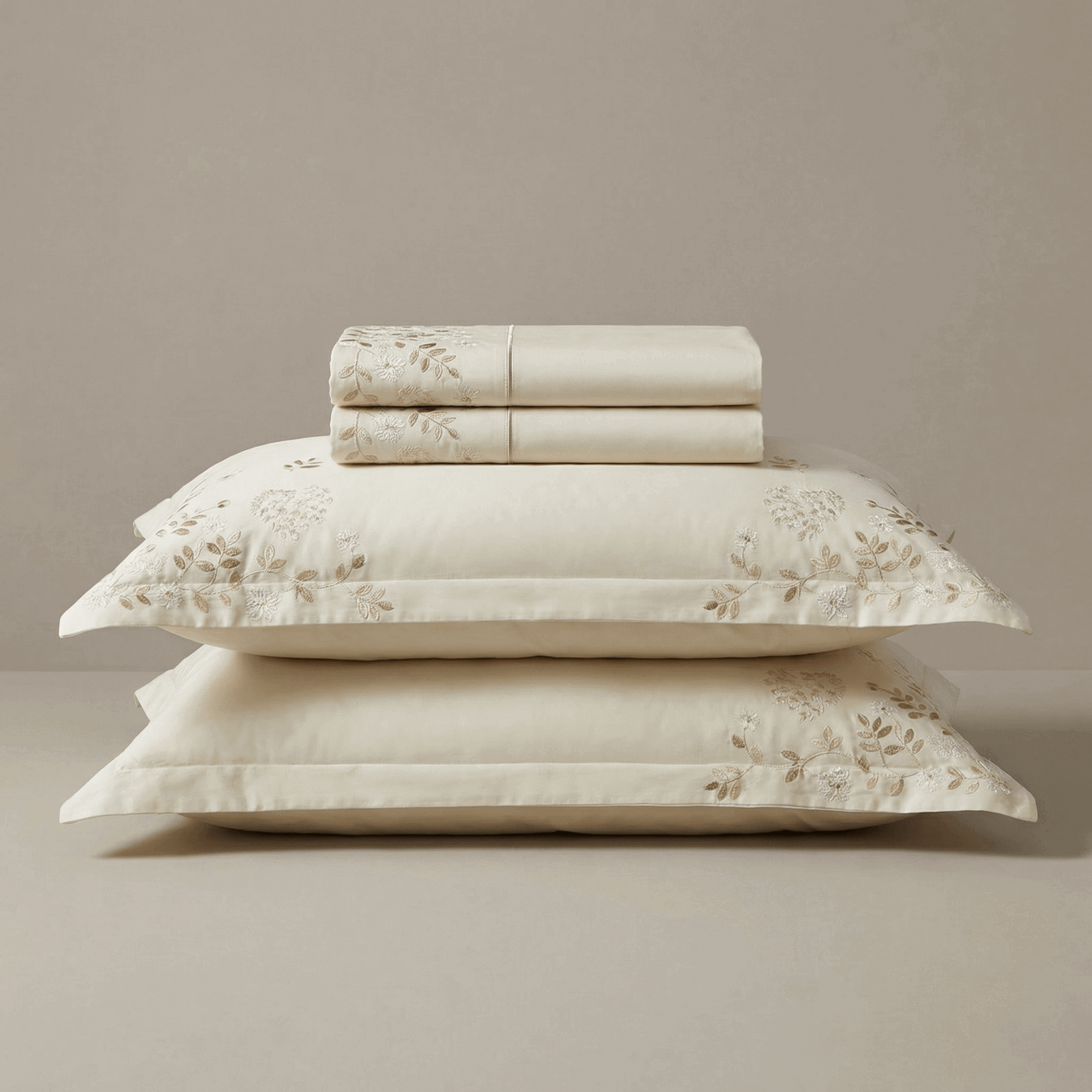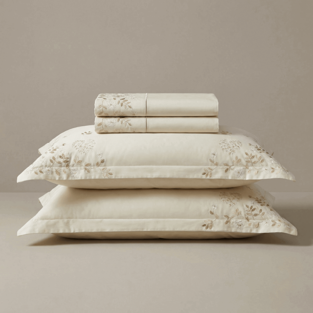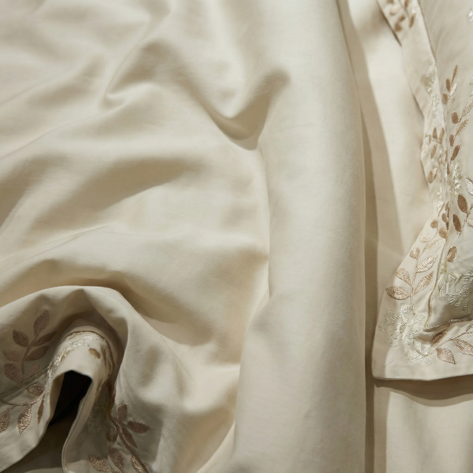 Svilanit PREMIUM vezena bombažno-satenasta posteljnina Sarah-Beige – prestižna kakovost egipčanskega bombaža