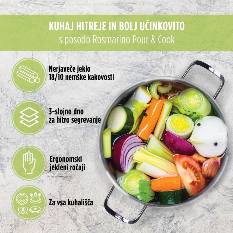 - Vitapur lonec Rosmarino Pour&Cook II s stekleno pokrovko – 14 L, 28 cm
