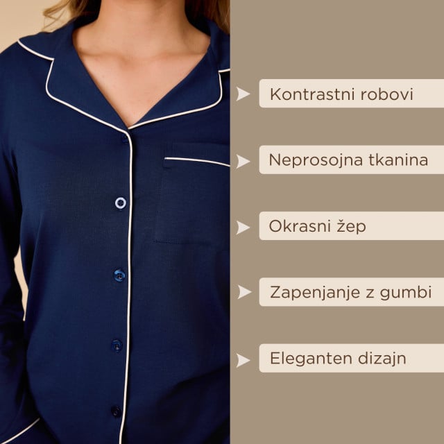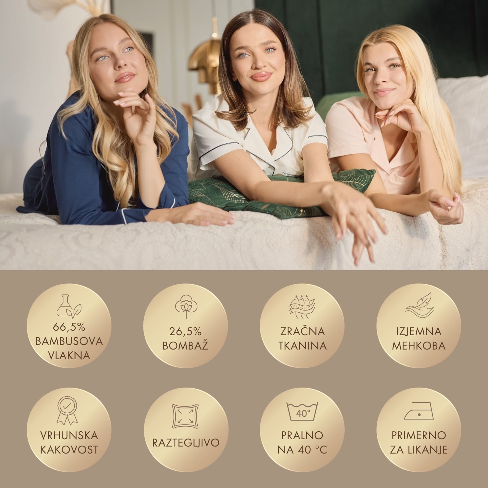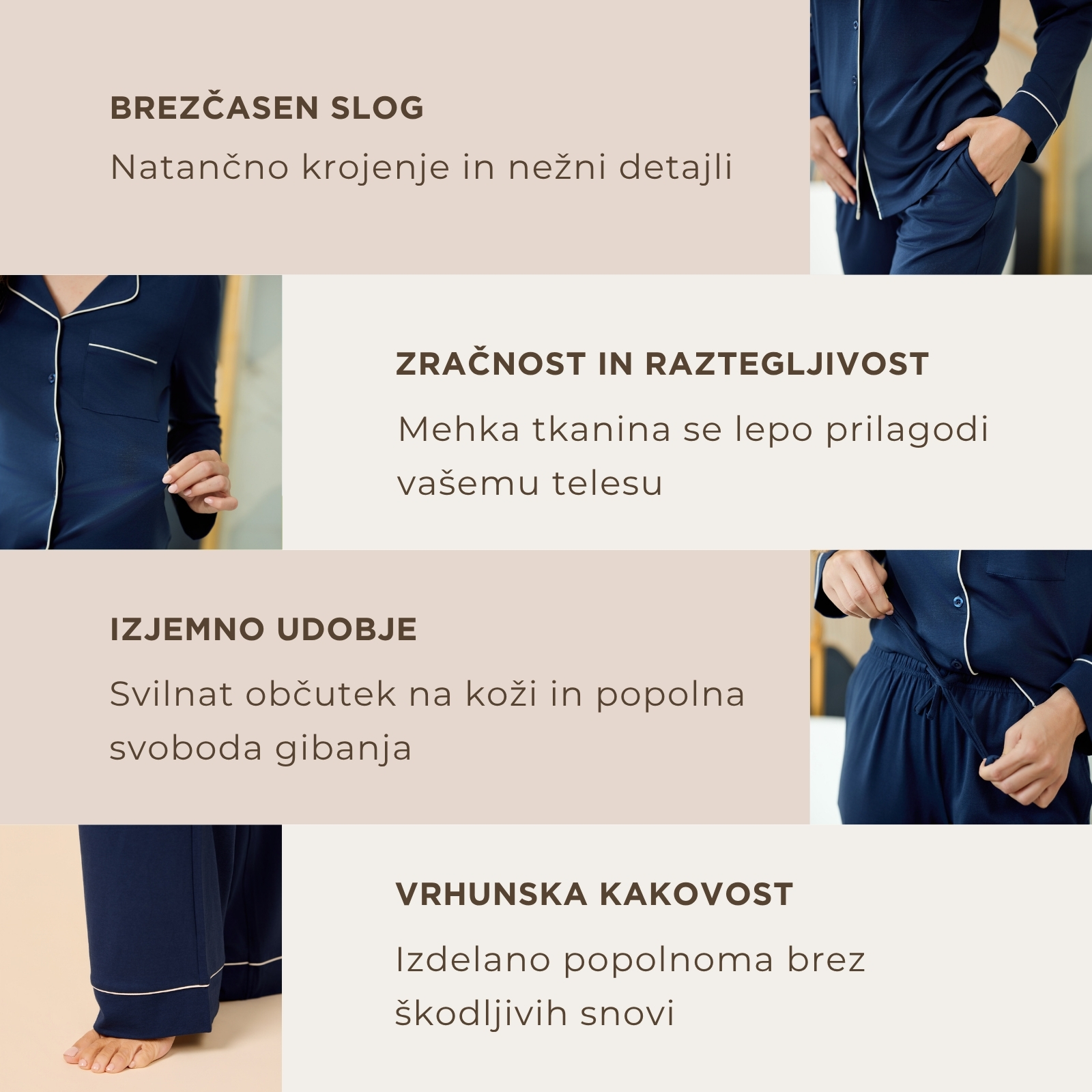 Ženska pižama Luméa združuje vrhunsko kakovost izdelave, minimalističen slog in prefinjene detajle – očarajo mehke obrobe, brezčasni gumbi in natančno krojenje.