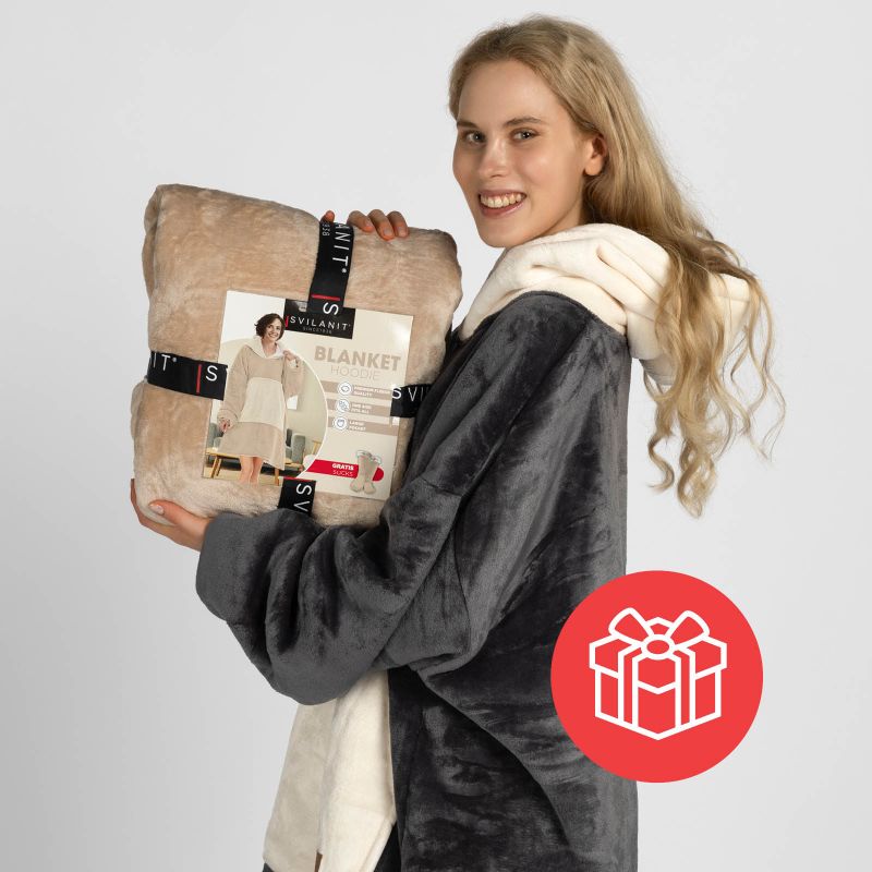 Hoodie odeja z rokavi Svilanit je priljubljen topel daljši pulover, ki ti bo spremenil življenje, da boš vedno na toplem. Izkoristiš jo lahko za uživanje v hladnejših večerih ali jutrih, ko potrebuješ nekaj mehkega in toplega, kar te objame. Ščiti te pred hladom, a hkrati se lahko v njej svobodno gibaš. Priročna kapuca te še dodatno ogreje, velik "kenguru" žep pa je dovolj velik, da v njem shraniš TV daljinski upravljalnik ali prigrizke. To je hibrid med puloverjem, odejico in puhastim oblačkom. V set smo dodali še mehke termo nogavičke, ki odlično zadržujejo toploto.