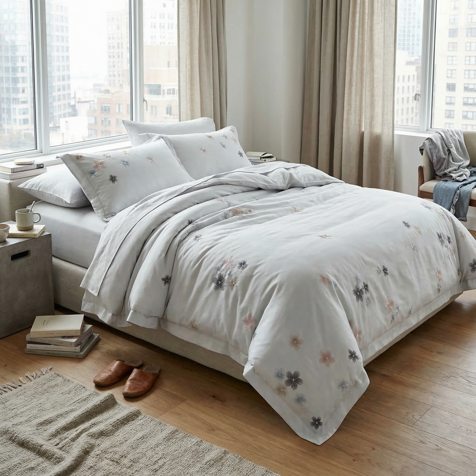 Prefinjen bombaž je tkan iz izjemno finih bombažnih vlaken z gosto satenasto vezavo, kar ustvarja vrhunsko mehkobo in dolgotrajno obstojnost.