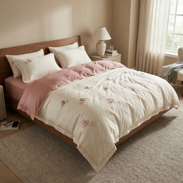 Prefinjen bombaž je tkan iz izjemno finih bombažnih vlaken z gosto satenasto vezavo, kar ustvarja vrhunsko mehkobo in dolgotrajno obstojnost.