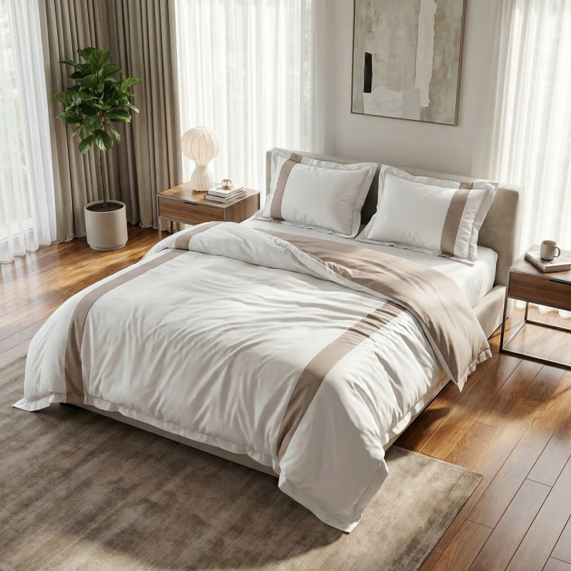 Prefinjen bombaž je tkan iz izjemno finih bombažnih vlaken z gosto satenasto vezavo, kar ustvarja vrhunsko mehkobo in dolgotrajno obstojnost.