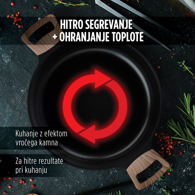 • Ponev z dvema ročajema premera 28 cm iz kakovostnega litega aluminija.