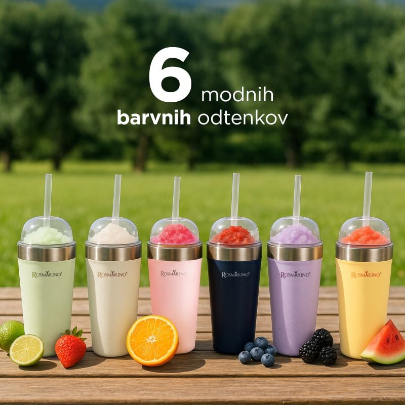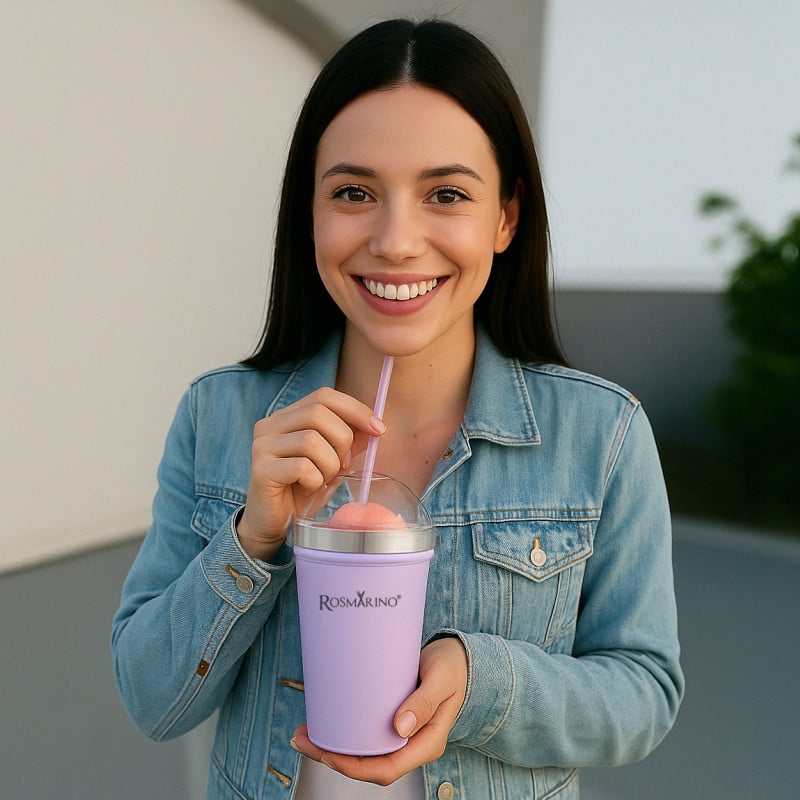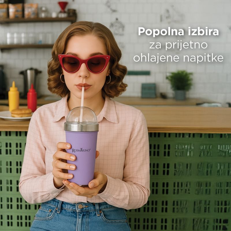Odkrijte novo dimenzijo osvežitve s termo kozarcem Rosmarino Sip`n`Chill. Zasnovan kot dopolnitev našega aparata za granito, ta trendovski termo kozarec spreminja način, kako uživate v granitah, ledeni kavi in koktajlih. Napredna dvojna stena iz nerjavečega jekla zagotavlja, da ostane vsak požirek tako hladen, kot mora biti – tudi po več urah. Ne glede na to, ali gre za kremast frape v pisarni, osvežilno granito na plaži ali slasten koktajl za prijatelje, kozarec Sip`n`Chill ohranja popolno temperaturo, teksturo in okus vaših kreacij. Eleganten pokrov v obliki kupole s slamico omogoča brezskrbno uživanje, medtem ko kompaktna velikost 500 ml zagotavlja optimalno porcijo za popolno osvežitev.