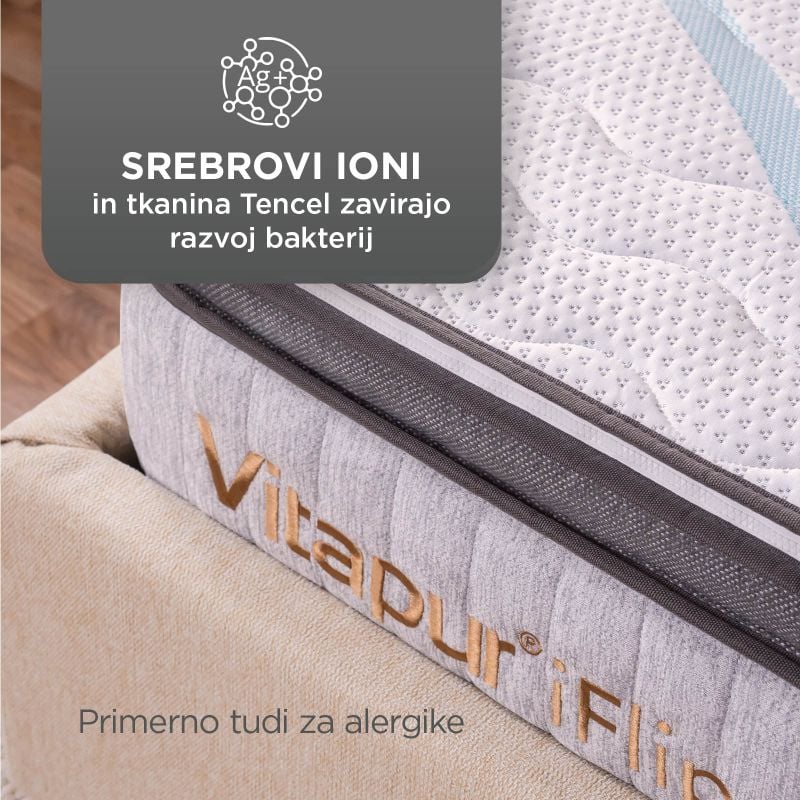 Srebrovi ioni na letni strani in naravna vlakna v tkanini Tencel na zimski strani zavirajo razmnoževanje bakterij zaradi potenja, kar ublaži simptome alergij in draženje kože. Poleg tega tkanina sezonskega nadvložka ne vsebuje škodljivih snovi, zato je to ležišče idealno za alergike. Zračni nadvložek lahko brez skrbi opereš in tako poskrbiš, da bo tvoje spalno okolje čistejše, sveže in prijetno suho.
